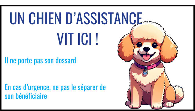 Stickers pour prévenir de la présence d'un chien d'assistance dans une voiture ou dans un domicile, afin que les secours ne le séparent pas de son bénéficiaire.